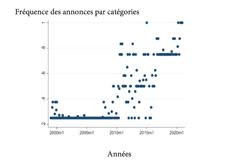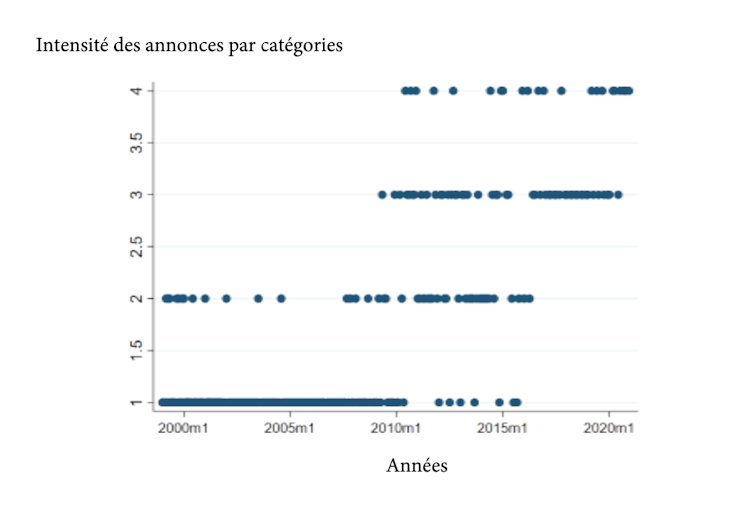 Le simple fait de disposer d’une large gamme d’outils, et non plus d’un seul instrument – le taux d’intérêt de court terme ou taux de bons du trésor – permet à la banque centrale de moduler ses annonces de politique monétaire en jouant sur leur intensité et leur fréquence. En ce sens, on peut considérer que ces nouveaux instruments « font communication ». Dans un article scientifique, nous avons analysé la stratégie de la BCE à destination de la presse. L’annonce de ces décisions sert-elle la prédictibilité pour les marchés financiers ? Ou rend-elle ses choix plus confus ?