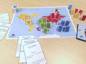 Un jeu de découverte, avec une cinquantaine de questions et défis en rapport avec les thèmes abordés par la Convention Internationale des Droit de l’Enfant.
