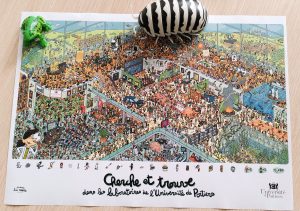 Plongez au cœur de l’université de Poitiers et découvrez un monde fascinant de savoir et de découverte avec notre Cherche et Trouve exclusif ! Partez rencontre des laboratoires au milieu de tous ces cerveaux en ébullition, où la curiosité et l’innovation se rencontrent. Saurez-vous trouver tous les personnages et objets cachés dans ce rassemblement d’esprits brillants ?